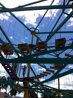 She was able to go eye to eye with dolphins and sea lions and otters. And she loved it. She also got to go on the rope course. She was so good at it that the guys running the place couldn't believe it was her first time.