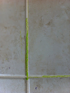 Yesterday afternoon I noticed Elizabeth sitting on the floor concentrating hard on an art project. I did a a double take and screamed in horror.