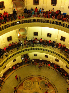 At this point we heard roars from outside the Capitol. Dewhurst had ordered that the doors be closed and locked and no one else allowed in. Hundreds of people on the steps were chanting "Let Us In!"